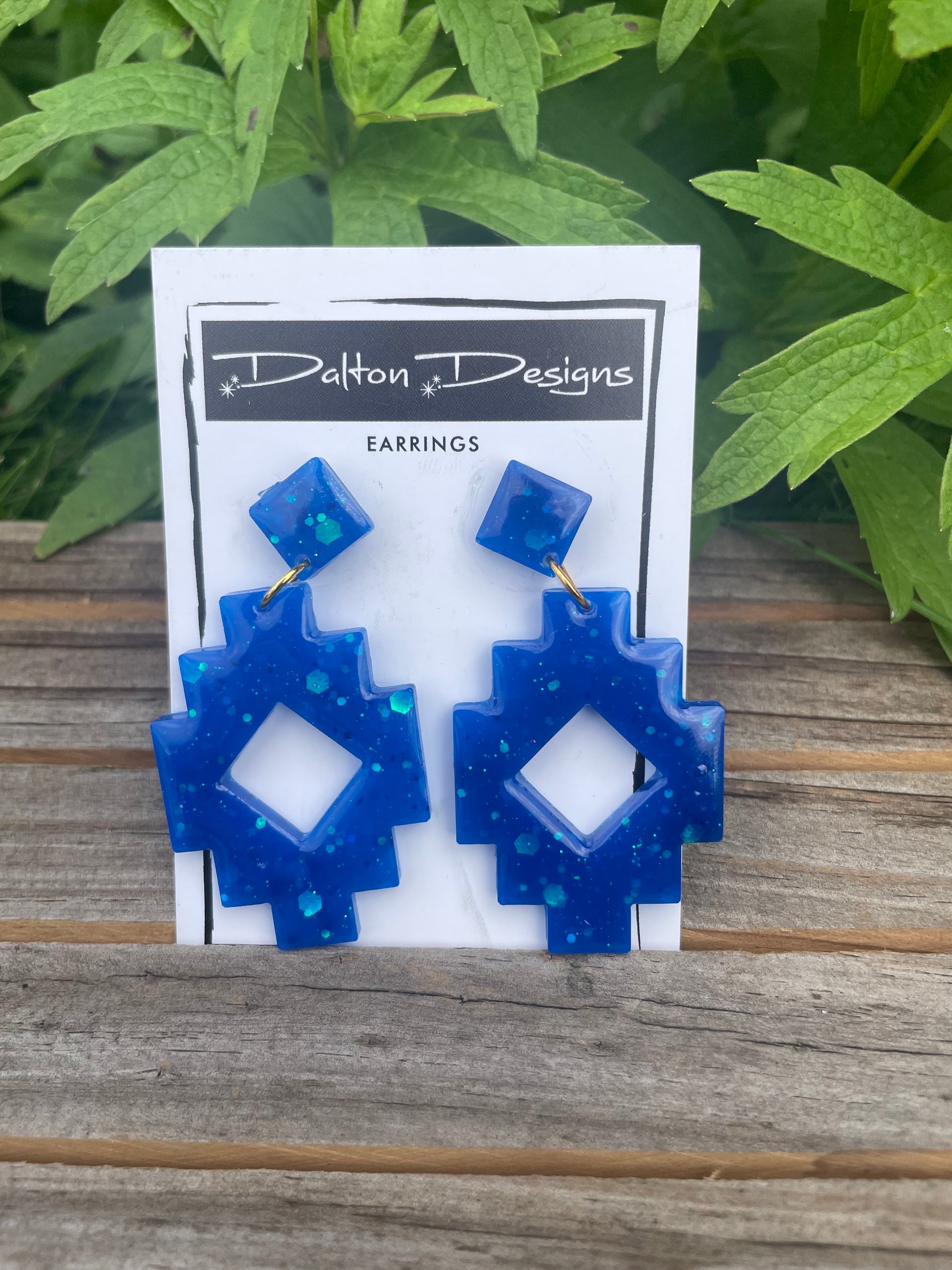 Blue Glitter Aztec Earrings