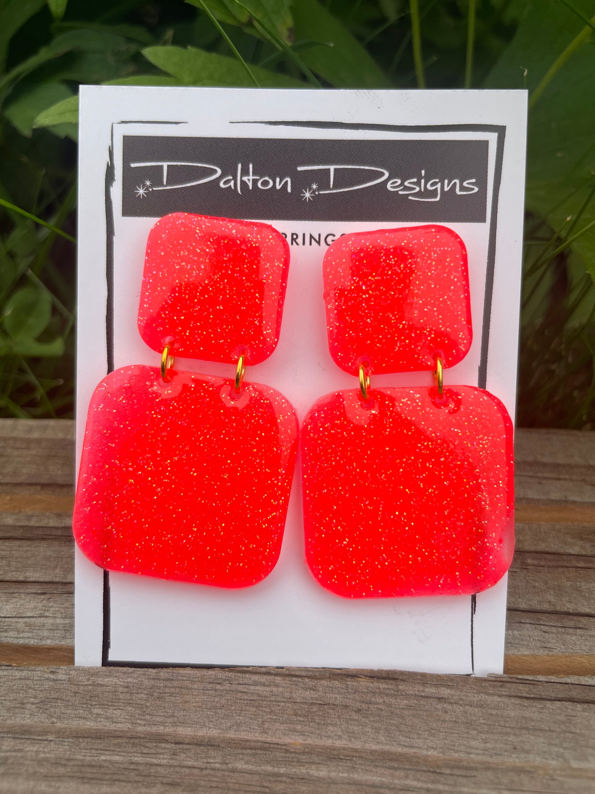 Add some bright color to your ears! These are a neon coral glitter earrings with a stud backing