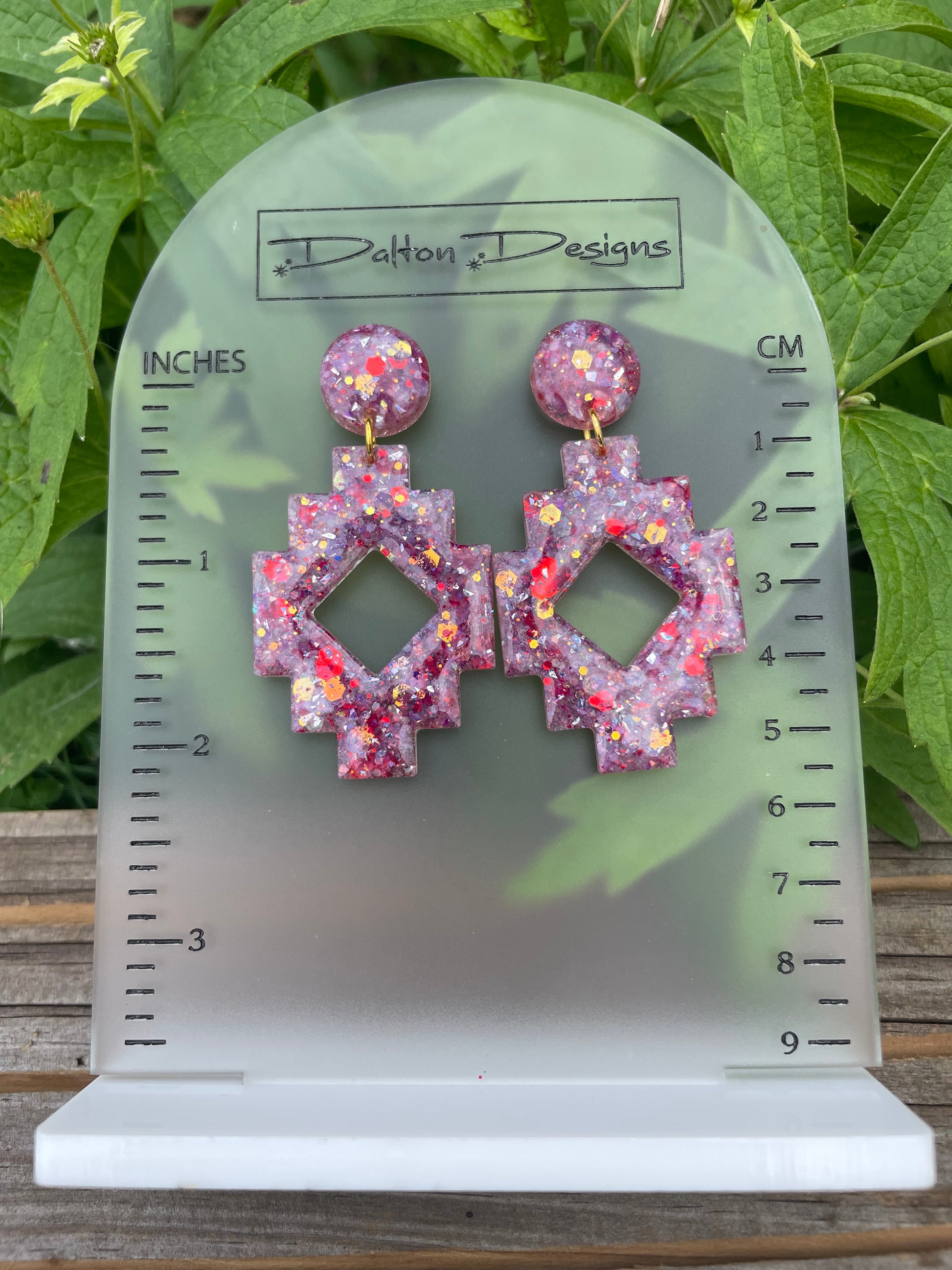 Chunky Red Glitter Aztec Earrings with stud backing