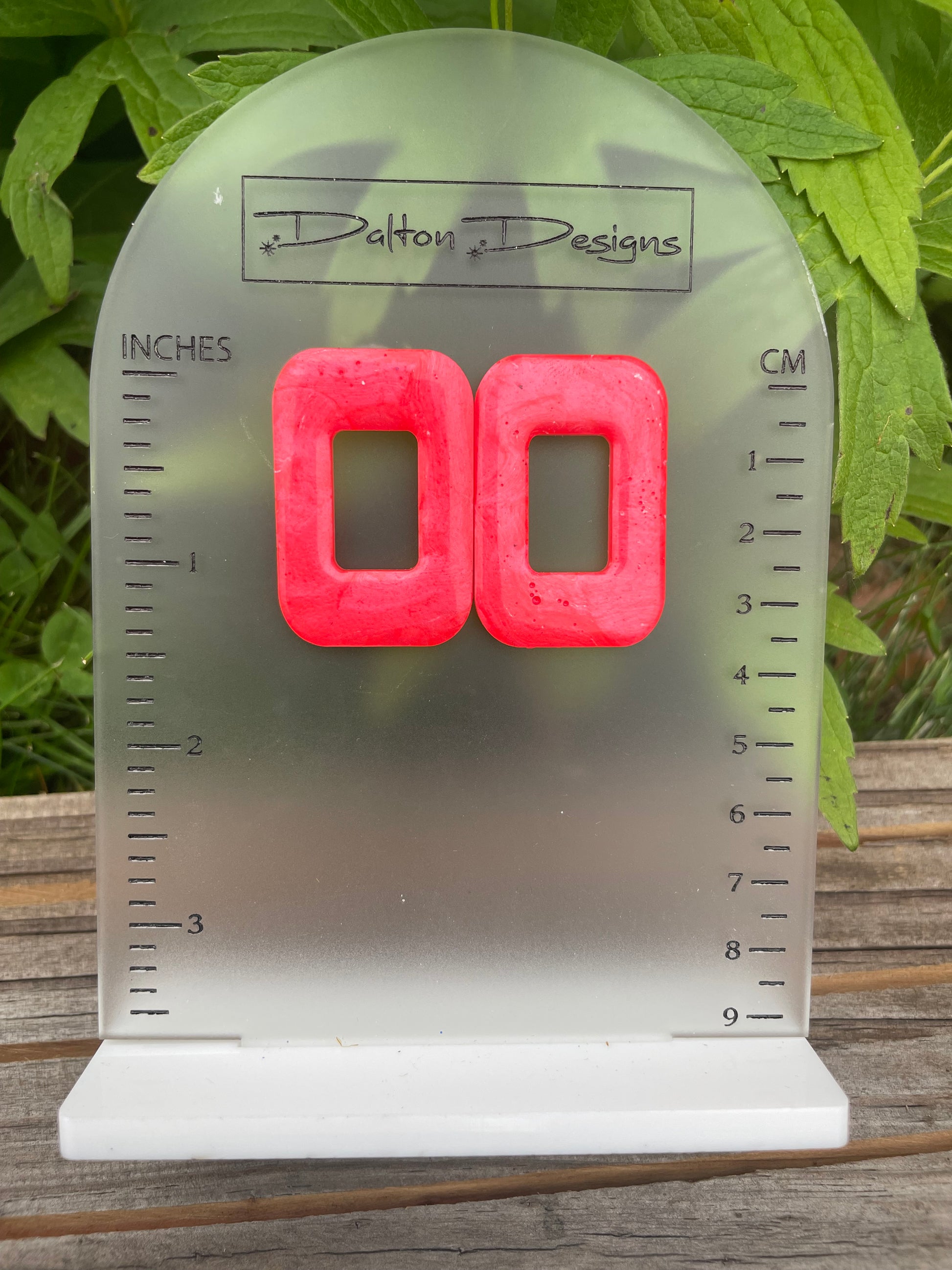 Pale neon coral rectangle earring with stud backing